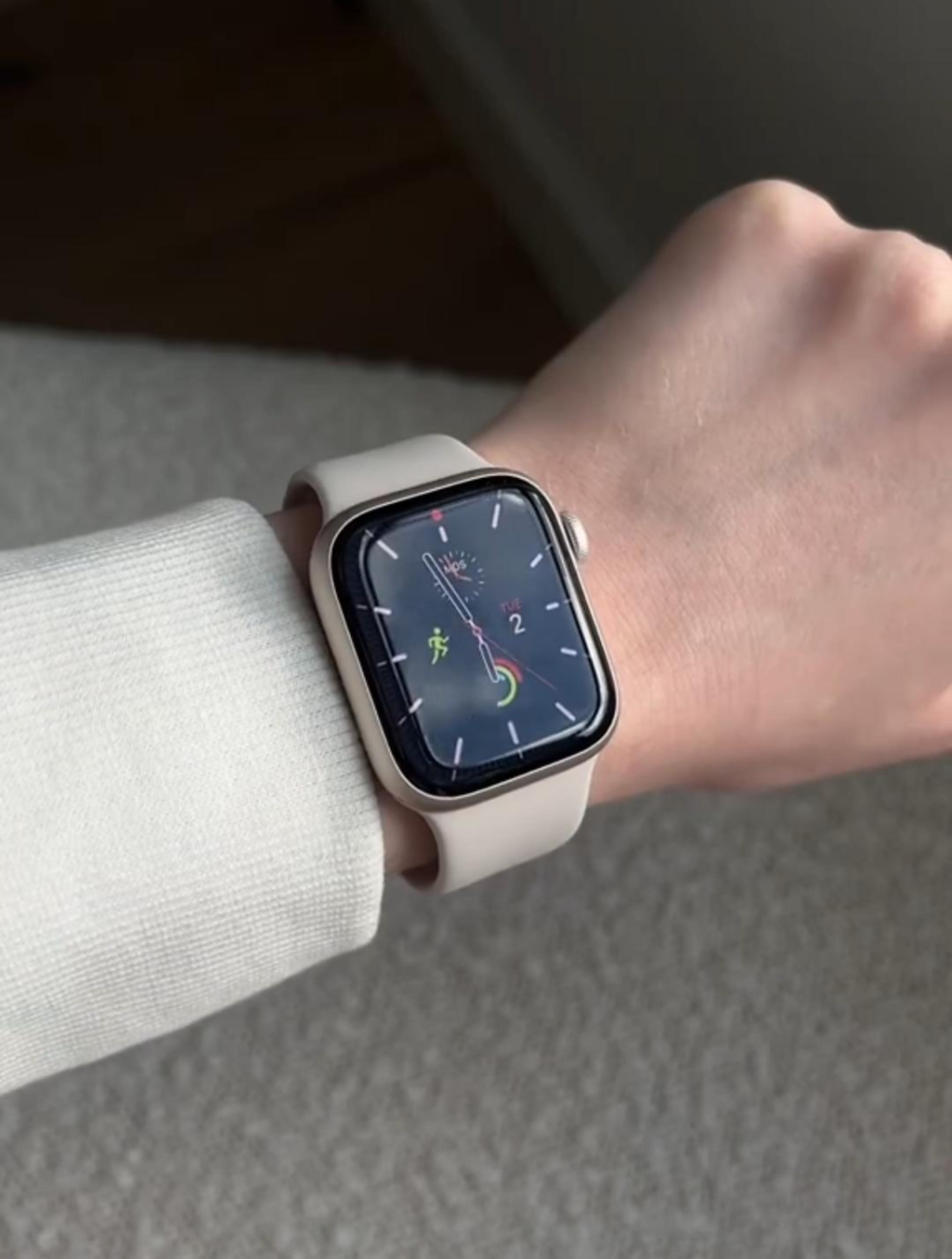 本款 Apple Watch Series 8 为国行正品,购买于2023年初,仅轻度使用数月,因升级新款故忍痛转让。手表整体成色保持极佳,屏幕始终贴膜使用,机身无划痕、无磕碰,外观近乎全新,表带